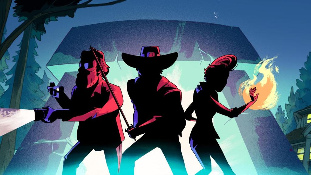 An image of the the three main characters of Amnesty standing in front of the gate via themcelroy.family